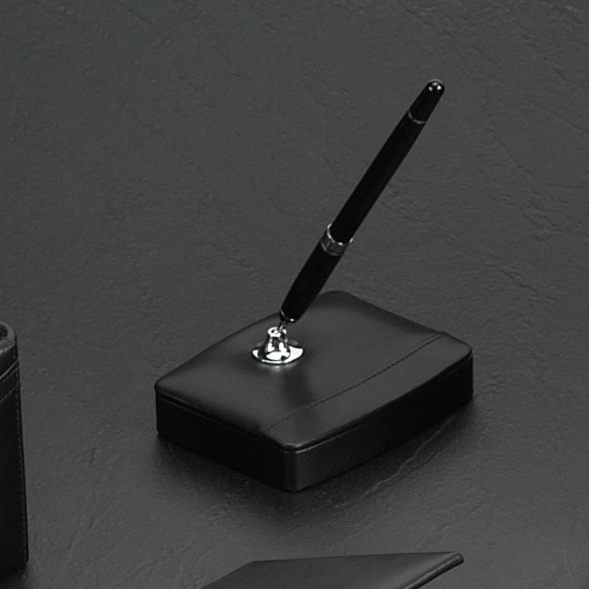 Features : This desk set includes a 15" x 22" desk pad blotter, a memo holder with a 4 1/2" x 6" refillable perforated pad, a pencil cup, and a matching fabric-covered frame for a 4" x 6" picture. Smooth leatherette surfaces on the desk pad, memo holder and inside the pencil cup, and coordinating moiré fabric on the easel and back of the photo frame. A felt backing on the blotter pad protects your desk surface.